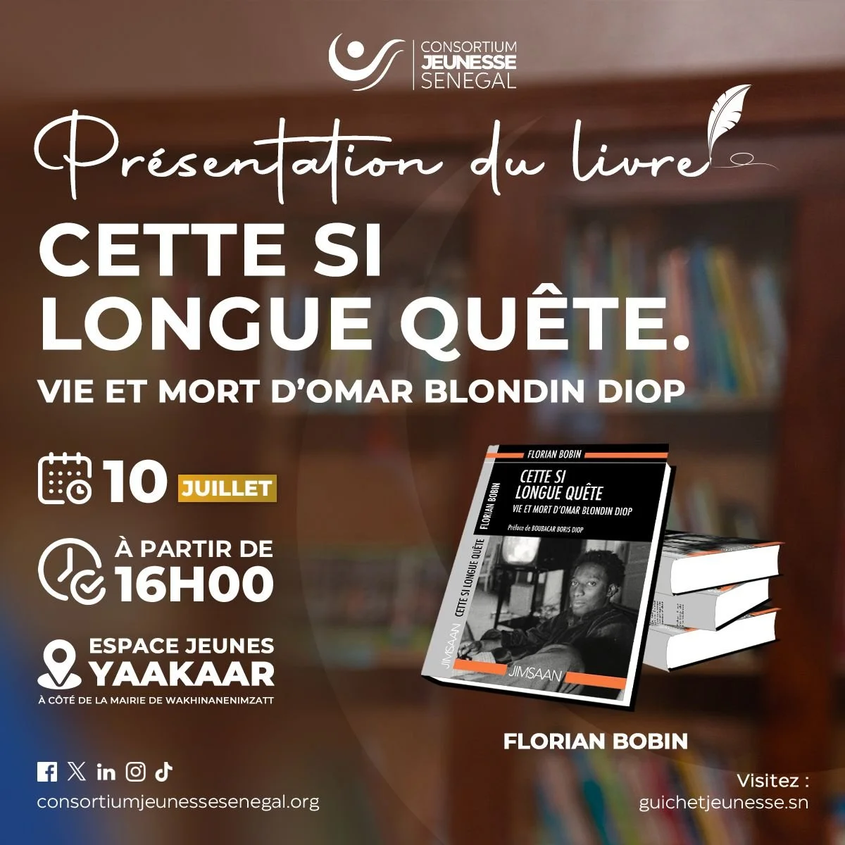 Rendez-vous à l’Espace Jeunes Yaakaar de Guédiawaye le 10 juillet 2024 à 16h pour la présentation du livre modérée par Michel Mendy.
